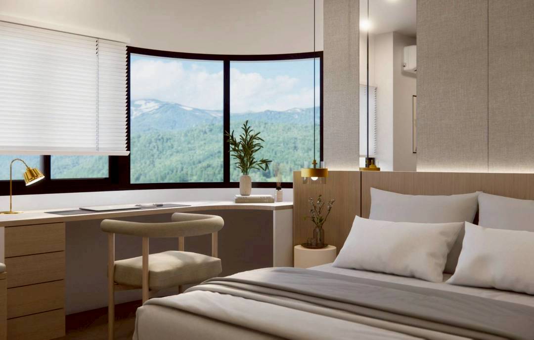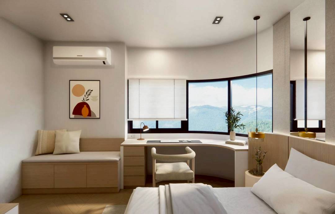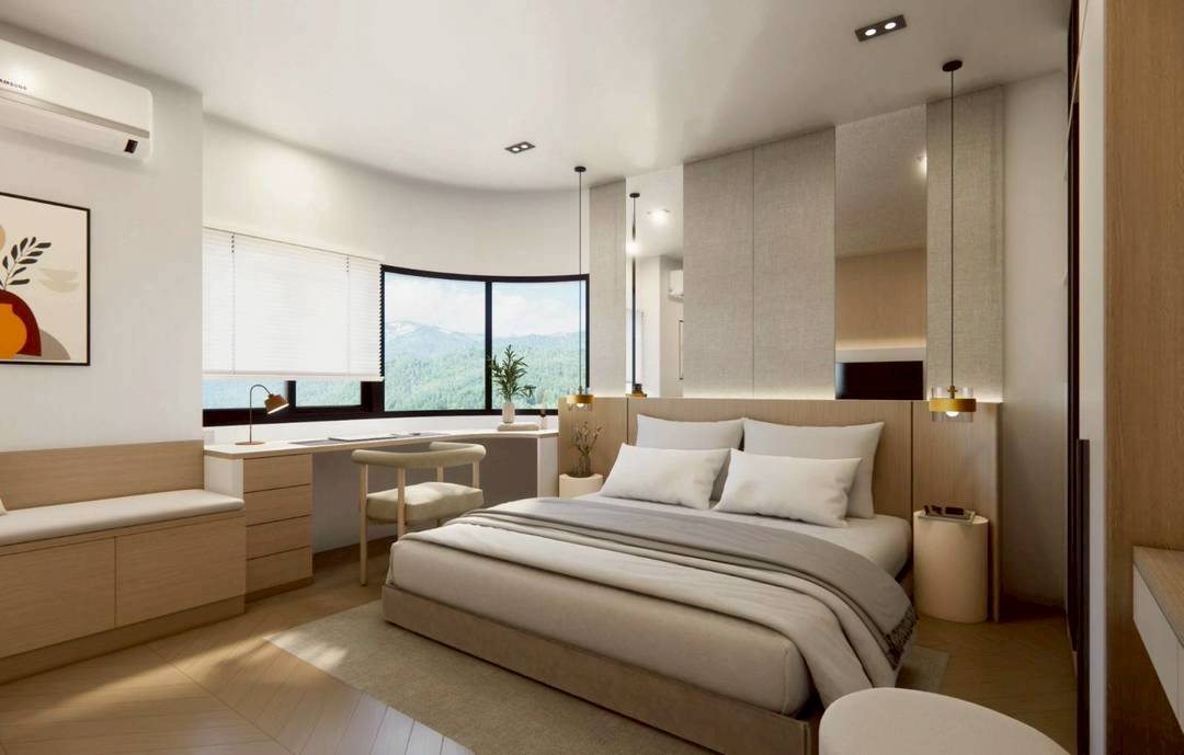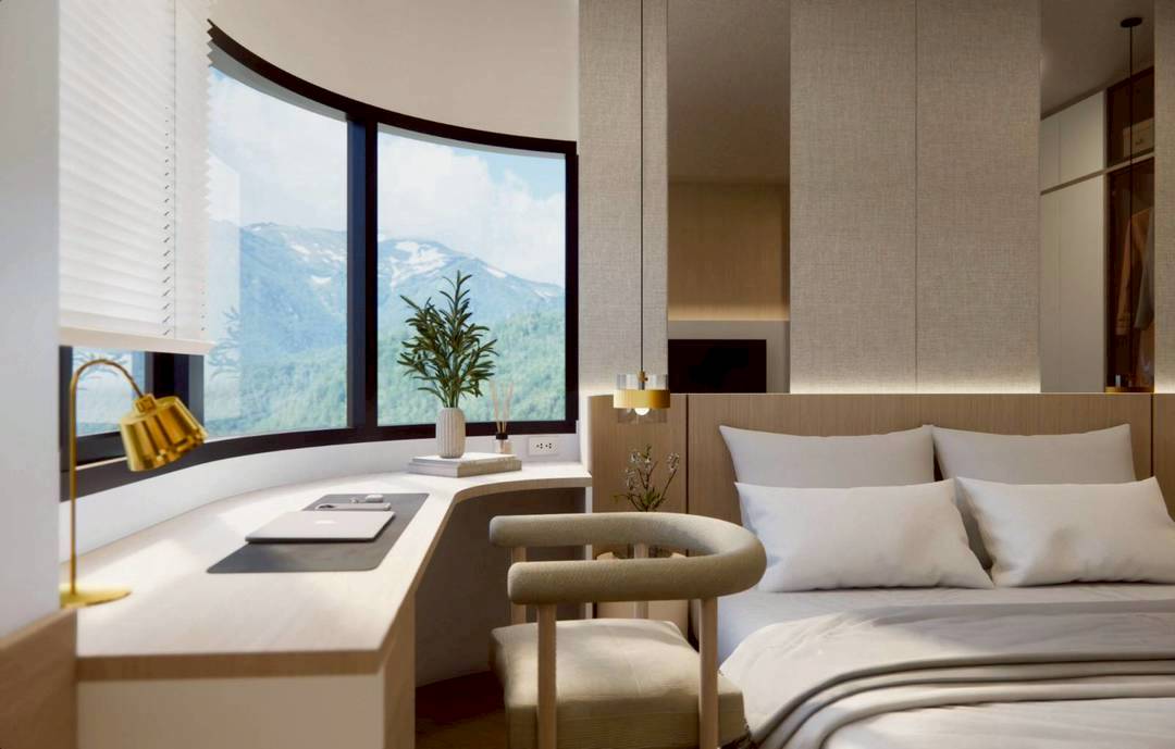 ขนาด 78.5 ตรม. หน้าต่างใหญ่กว้าง วิวภูเขาสวยงาม ห้องตกแต่งหรู โทนอบอุ่น มีระเบียง วิวภูเขาเต็มๆ สวยมาก