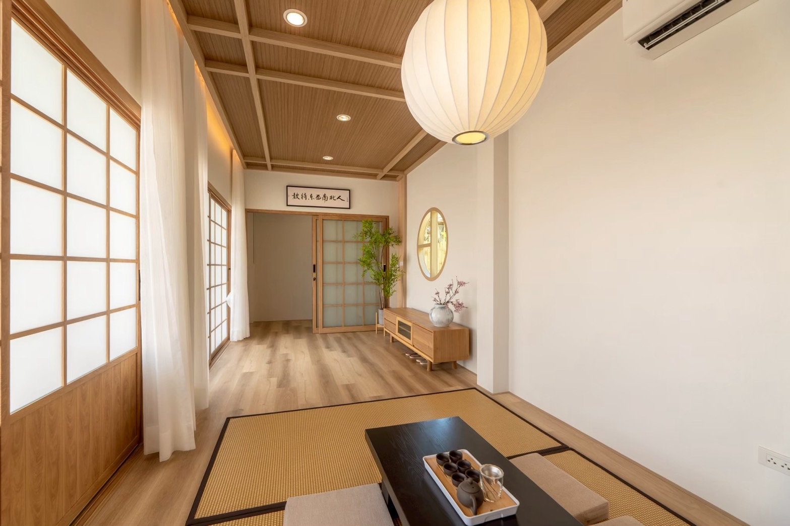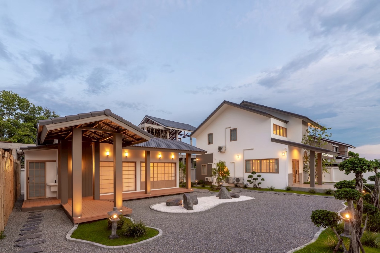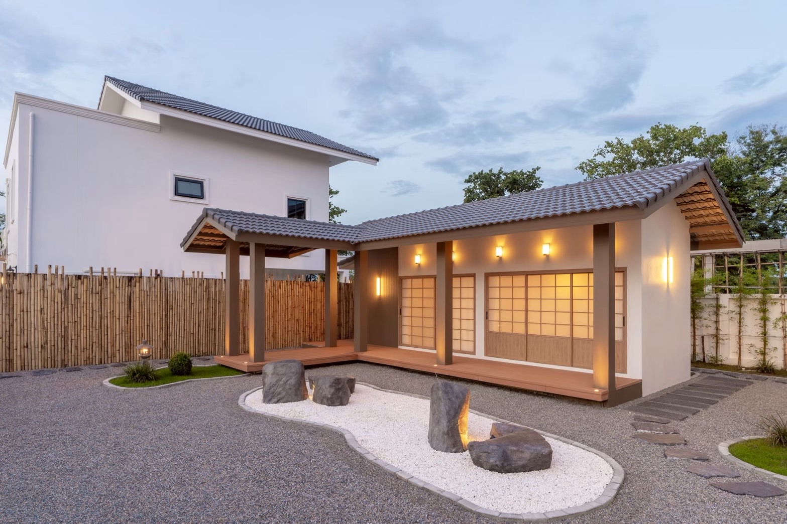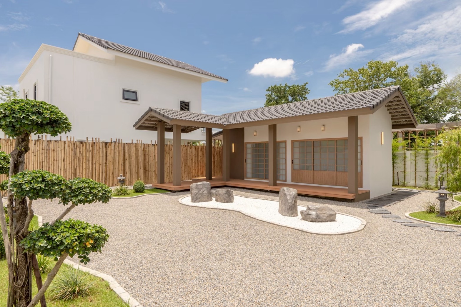 – พื้นที่รอบบ้านกว้างด้วยสวนเซน พร้อมเรือนจิบน้ำชา