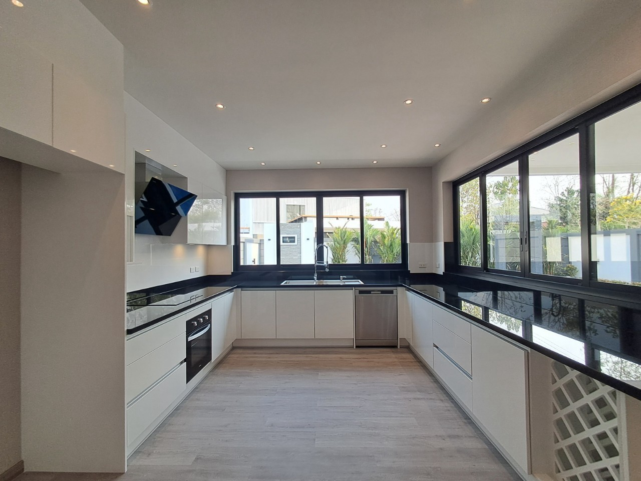 – ชุดครัวบิ้วอิน แบบตะวันตก พร้อมเตาอบ ที่ดูดควัน เตาไฟฟ้า และเครื่องล้างจาน