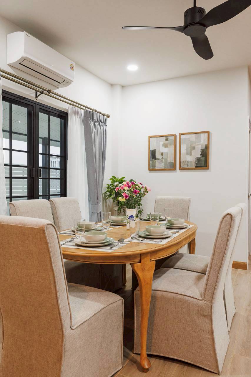 – ห้องอาหาร พร้อมโต๊ะเก้าอี้รับประทานอาหาร